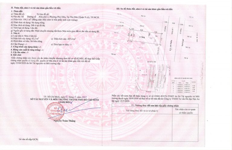 | 3 | Nhà phố liền kề diện tích 6x17m . Xây dựng 1 triệt 2 lầu . Tổng diện tích xây dựng 215m2 . Trục đường 20m . Hướng Tây . Giá bán 18 tỷ. |